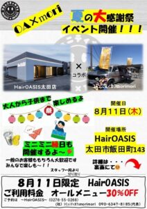 そして、HairOASIS太田店から当日のみ全てのメニューを30%OFFさせて頂きたいと思って