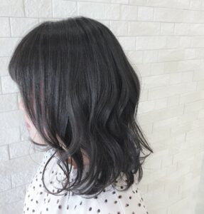 表面の髪(根元)をパーマをかけず残すことで艶感もでてあまさも