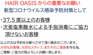 今日はHair OASISで取り組んでいるコロナ対策について、